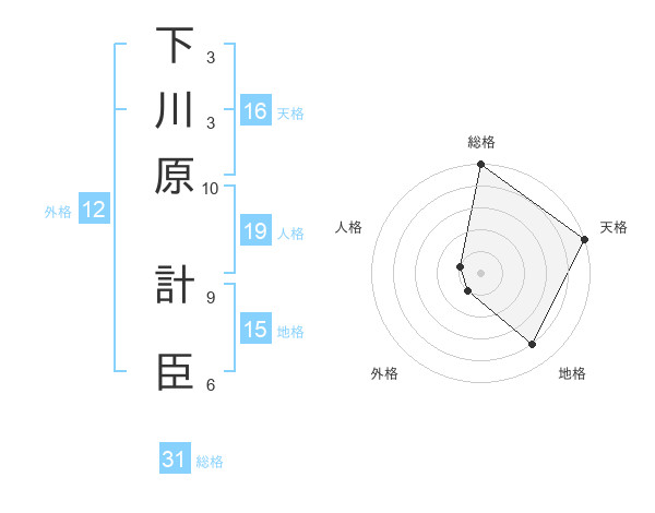 下川原 計臣さんを姓名の画数から五運を鑑定