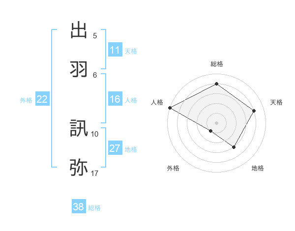 出羽 訊弥さんを姓名の画数から五運を鑑定