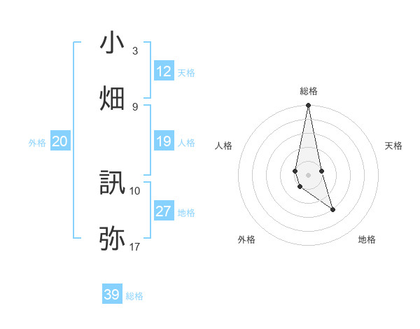 小畑 訊弥さんを姓名の画数から五運を鑑定