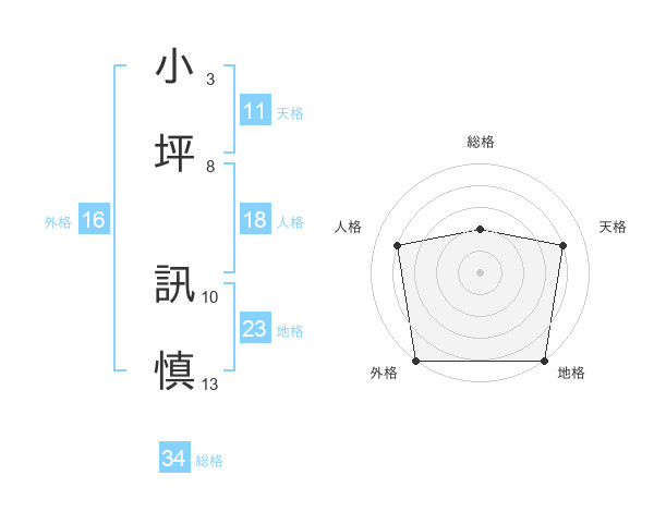 小坪 訊慎さんの総格は34画の2点!