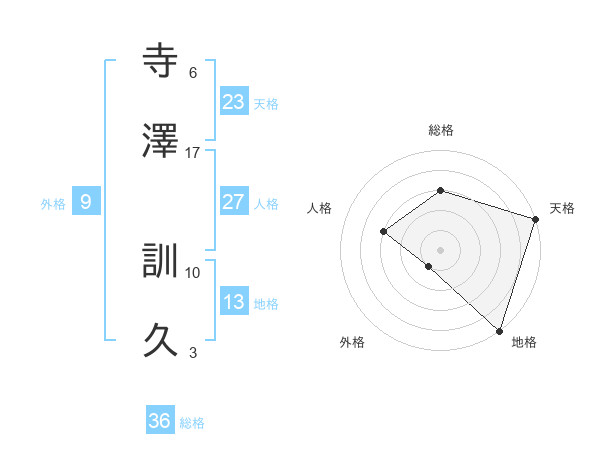 寺澤 訓久さんの総格は36画の3点!