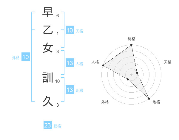 早乙女 訓久さんを姓名の画数から五運を鑑定