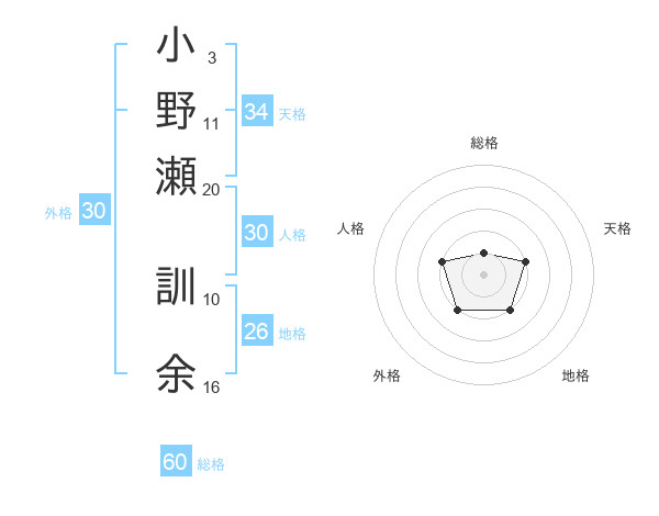 小野瀬 訓余さんを姓名の画数から五運を鑑定