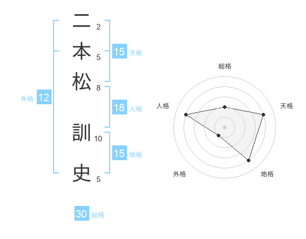 二本松 訓史さんを姓名の画数から五運を鑑定