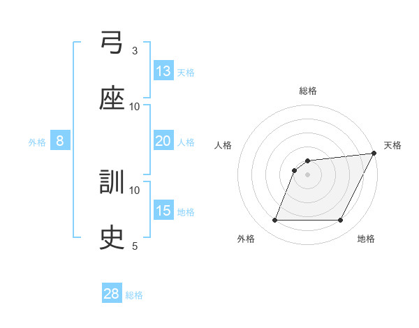 弓座 訓史さんの天格は13画の5点!