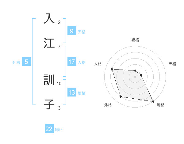 入江 訓子さんの総格は22画の1点!
