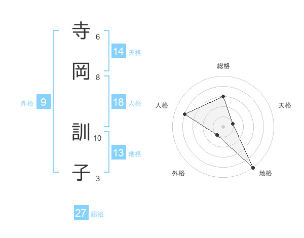 寺岡 訓子さんを姓名の画数から五運を鑑定