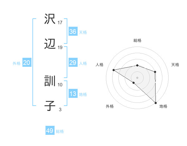 沢辺 訓子さんの総格は49画の2点!
