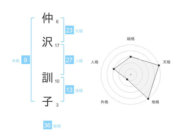 仲沢 訓子さんを姓名の画数から五運を鑑定