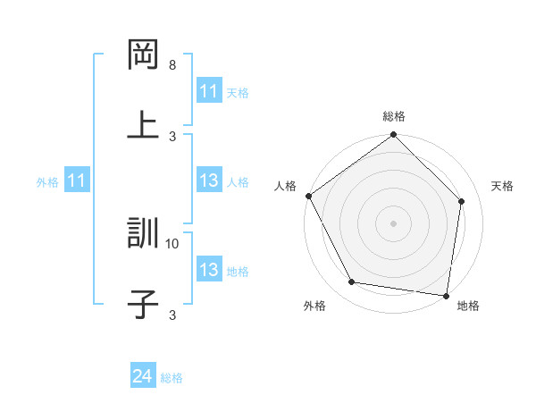 岡上 訓子さんの総格は24画の5点!
