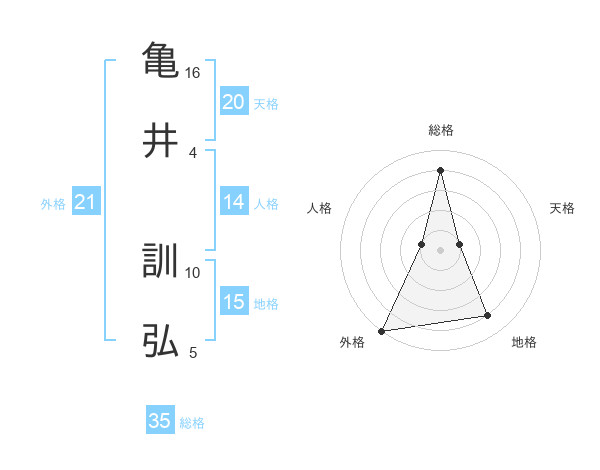 亀井 訓弘さんの総格は35画の4点!