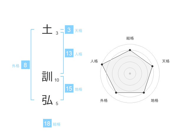 土 訓弘さんを姓名の画数から五運を鑑定