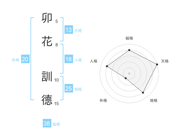 卯花 訓德さんの外格は20画の1点!