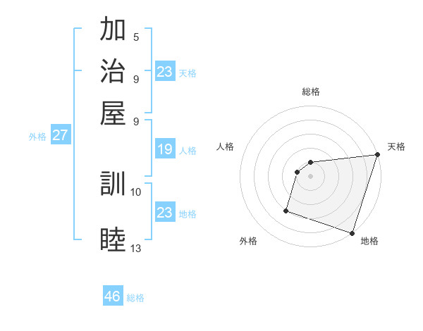 加治屋 訓睦さんの天格は23画の5点
