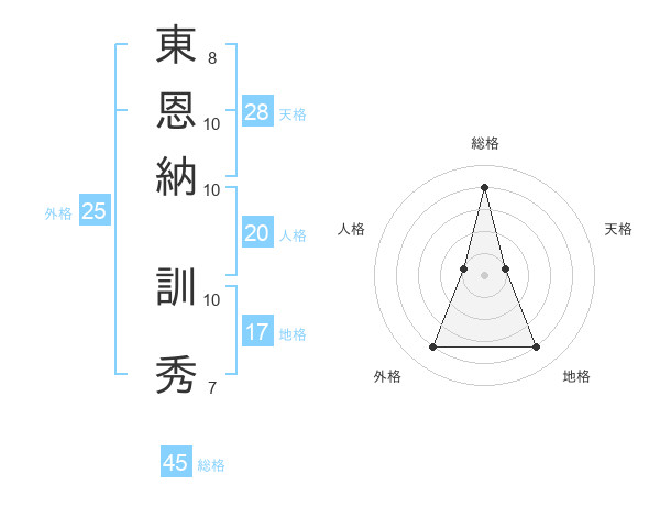 東恩納 訓秀さんを姓名の画数から五運を鑑定