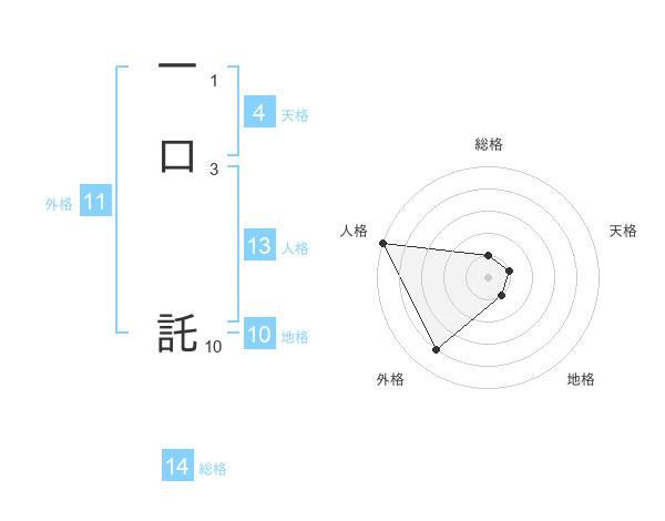 一口 託さんの外格は11画の4点!