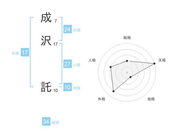 成沢 託さんの天格は24画の5点!
