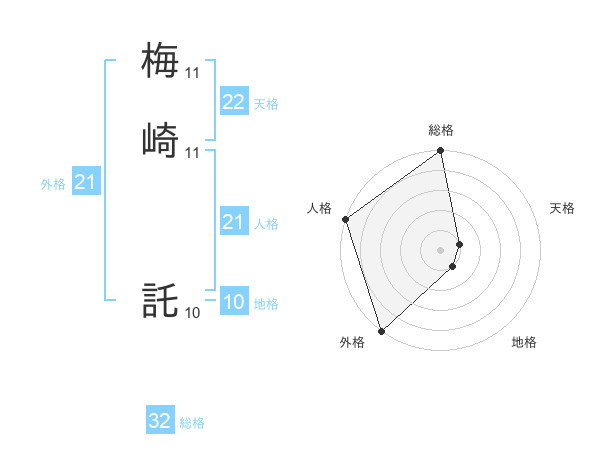 梅崎 託さんの人格は21画の5点!