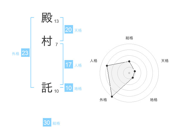 殿村 託さんの外格は23画の5点!