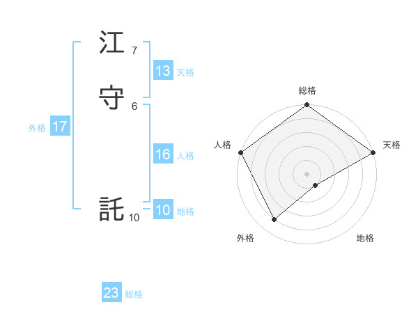 江守 託さんの総格は23画の5点!