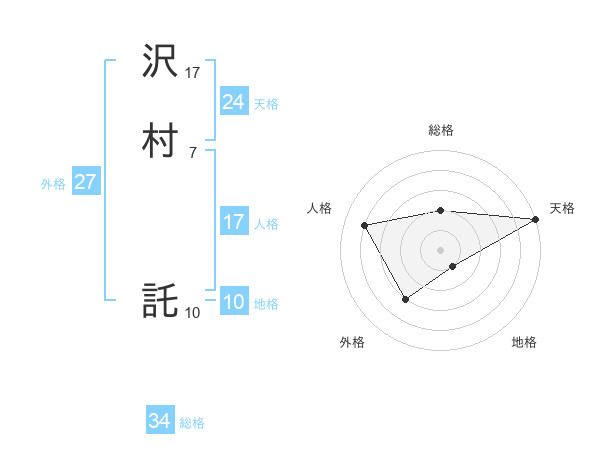 沢村 託さんの天格は24画の5点!