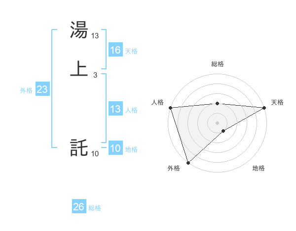 湯上 託さんの外格は23画の5点!