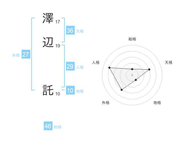 澤辺 託さんの総格は46画の1点!