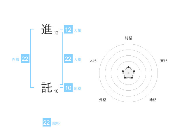進 託さんの総格は22画の1点!