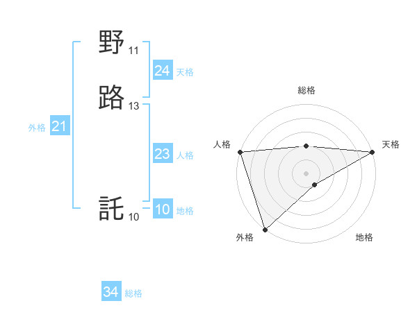 野路 託さんの外格は21画の5点!