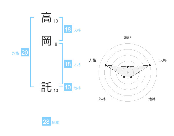 高岡 託さんの天格は18画の4点!