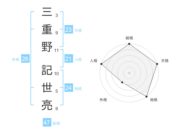 三重野 記世亮さんを姓名の画数から五運を鑑定