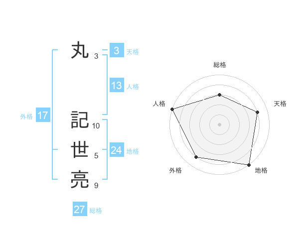 丸 記世亮さんを姓名の画数から五運を鑑定