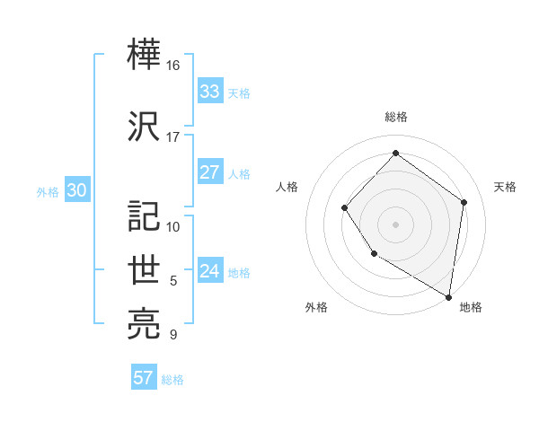 樺沢 記世亮さんの総格は57画の4点!