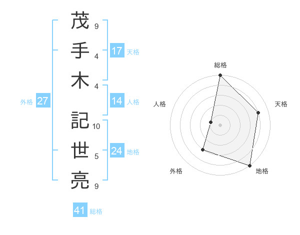 茂手木 記世亮さんを姓名の画数から五運を鑑定