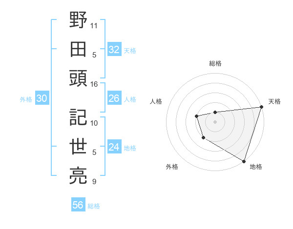 野田頭 記世亮さんを姓名の画数から五運を鑑定