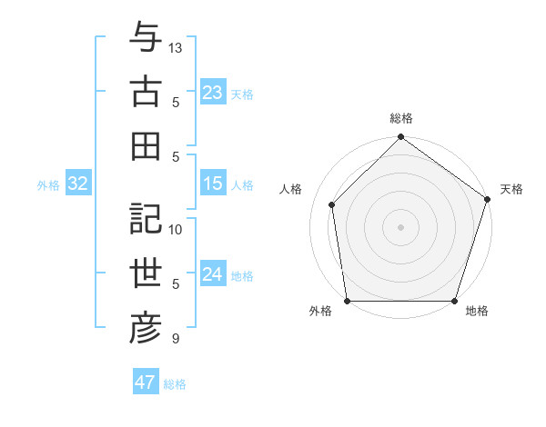 与古田 記世彦さんを姓名の画数から五運を鑑定