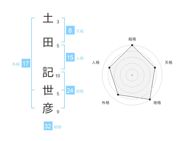 土田 記世彦さんを姓名の画数から五運を鑑定
