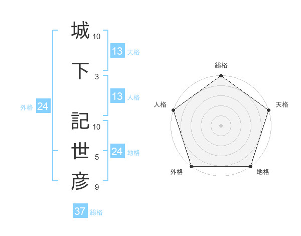 城下 記世彦さんを姓名の画数から五運を鑑定