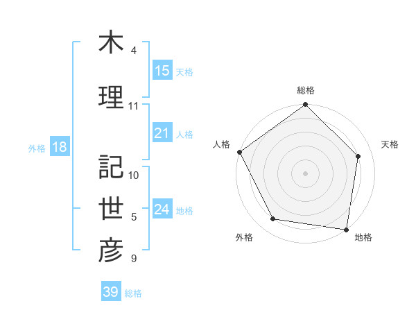 木理 記世彦さんを姓名の画数から五運を鑑定