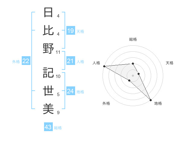 日比野 記世美さんを姓名の画数から五運を鑑定