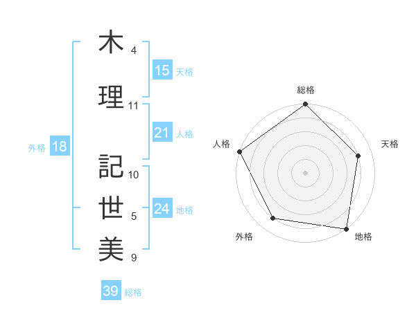 木理 記世美さんの天格は15画の4点!