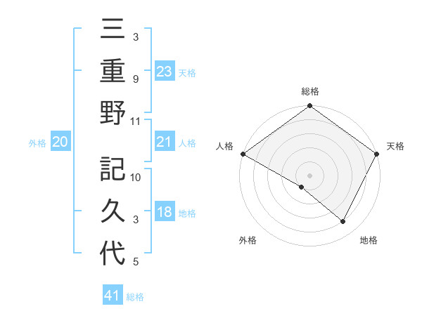 三重野 記久代さんを姓名の画数から五運を鑑定
