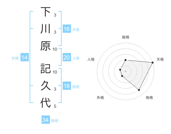 下川原 記久代さんの天格は16画の5点!