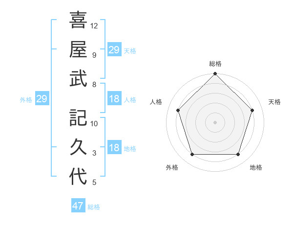 喜屋武 記久代さんの総格は47画の5点!