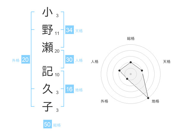 小野瀬 記久子さんを姓名の画数から五運を鑑定
