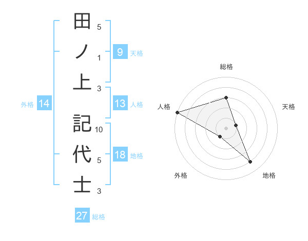 田ノ上 記代士さんの総格は27画の3点!