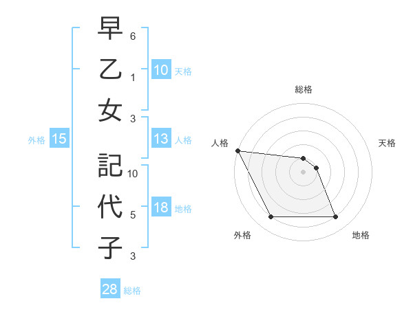 早乙女 記代子さんを姓名の画数から五運を鑑定