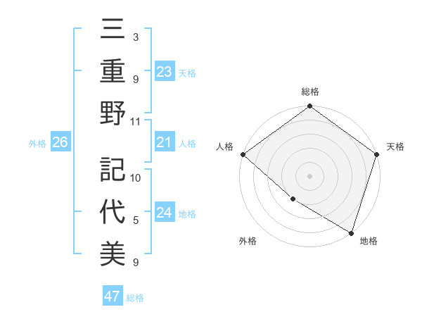 三重野 記代美さんを姓名の画数から五運を鑑定