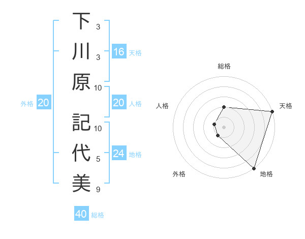 下川原 記代美さんを姓名の画数から五運を鑑定