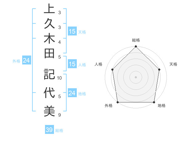 上久木田 記代美さんの総格は39画の5点!